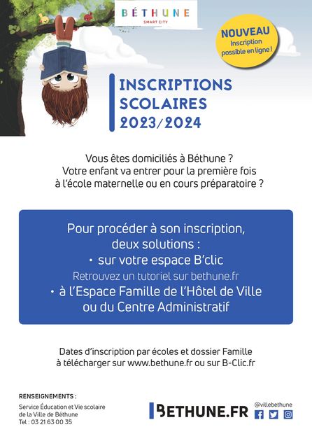 Inscriptions scolaires 2023/2024 Ville de Béthune